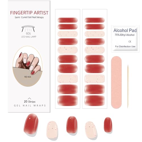 Rouge Stickers Ongles Gel, KALEFUL Nail Stickers Semi-durci Autocollant Ongle Gel Uv Deco Ongle Nail Art Sticker Décoration