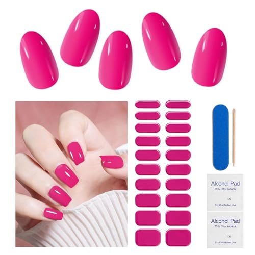 EnixwH Lot de 22 Bandes Autocollant Ongle Gel UV, Stickers Ongles, Ongles en Gel UV Semi Durci, Autocollants Complets pour Ongles UV/LED Lamp Required Bandes D'Ongles en Gel Durci (Rose)