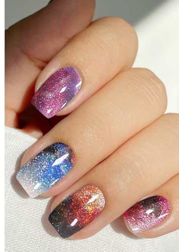 Boloshine 20Pcs Bande de Gel Semi-Durci pour Ongles, Couverture Complète Stickers Ongles Gel UV Vernis Autocollant, Bandes d'ongles en Gel, Lampe UV/LED Requise - Étoiles Ardentes et Innombrables