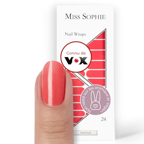 Original Miss Sophie Stickers pour ongles Coral Crush I 24 bandes ultra-fines monochromes I Pour les ongles des mains & pieds I Tiennent sur de l'acrylique, du gel et du vernis