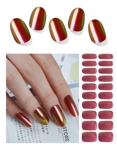 Wahrshei Vernis Autocollant UV | Rouge Chrome Autocollant Ongle Gel UV | 20pcs Film pour Ongles Autoadhésif | Gel Nail Stickers, Autocollants et Pochoirs Pour Nail Art