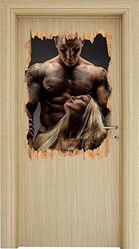 UYEDSR Stickers Muraux Femme Sexy avec Homme tatoué Percée en Bois dans Un Look 3D Sticker Mural ou de Porte Sticker Mural Sticker Mural Décoration Murale 62x42cm