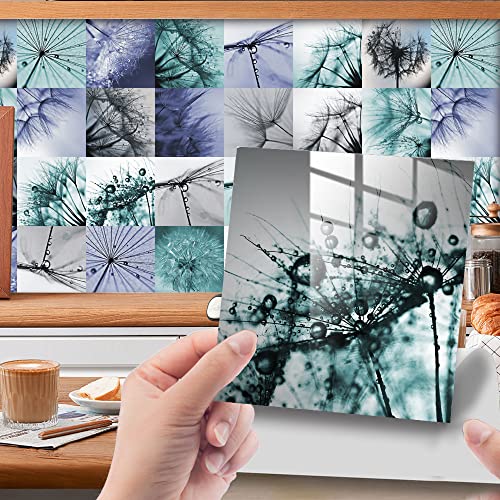 Lukery Stickers Carrelage Cuisine, 24 PCS Stickers Muraux Impression de Fleurs Stickers Cuisine Sol, Autocollant Mural pour Salon Salle de Bains Maison Auto-Adhésif (20x20cm,Pissenlit)
