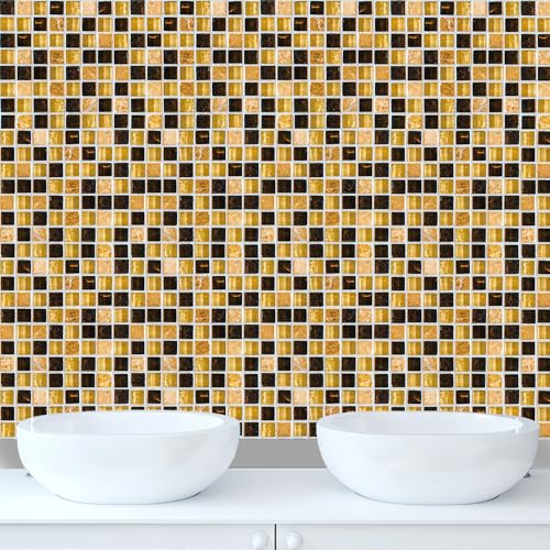 Stickers Muraux Cuisine Mosaïque Jaune Noir Credence Adhesive pour Cuisine Meuble Carrelage Adhesif Mural Salle de Bain Décor Dalle pvc Adhesive Sol Stickers Carrelage 20x20cm /10 pièces