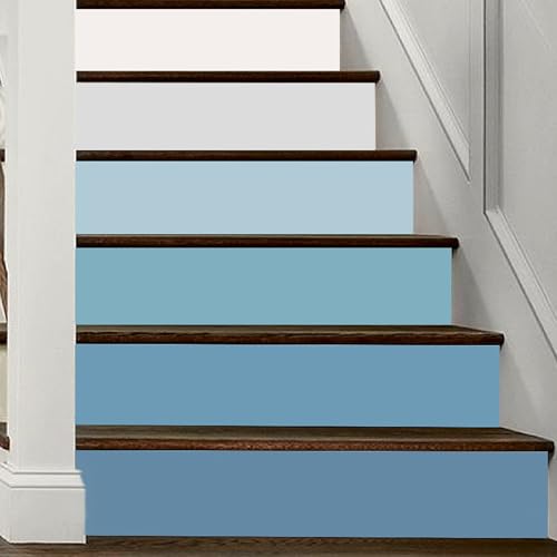 6 pcs Stickers escalier contremarche en 3d, autocollants auto-adhésifs pour marches en bois, décalcomanies d'art imperméables d'intérieur, vinyle, dégradé blanc bleu