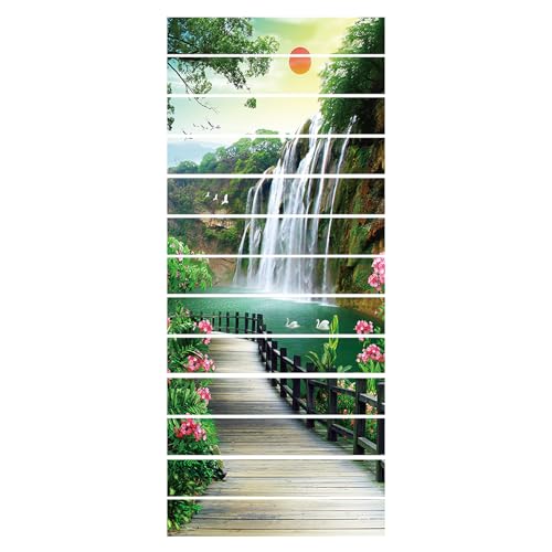 13 pcs Stickers escalier contremarche en 3d, autocollants pour escaliers auto-adhésifs pour marches en bois, décalcomanies d'art imperméables d'intérieur vinyle, paysage d'eau de montagne en cascade