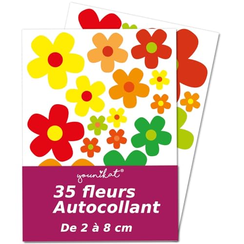 Französisch: Set d’autocollants fleurs colorées | Stickers Flower-Power pour scooter, vélo, ordinateur portable, téléphone, voiture | résistant aux intempéries | kfz243