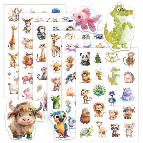 HMCEY 6 Pièces Autocollant Animaux à Paillettes,Autocollant Animal Scrapbooking avec Effet Pailleté,Journaling Stickers Bullet Journal,Stickers Téléphone pour Valise, Bouteille, Album - 135 motifs