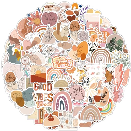 Stickers Boho 100 Pcs, Aesthetic Autocollants Bohème pour Ordinateur Portable, Téléphone, Skateboard, Valise, Guitare, Tampon, Mignons Autocollants en Vinyle Esthétiques étanches Scrapbook