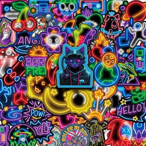 JOOTUEPO 100 Pcs Cool Neon Stickers, Imperméables Vinyle Autocollant, Stickers, pour Telephone Ordinateur Portable Scrapbooking Skateboard Bouteille Journal Guitare etc