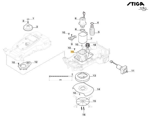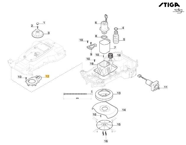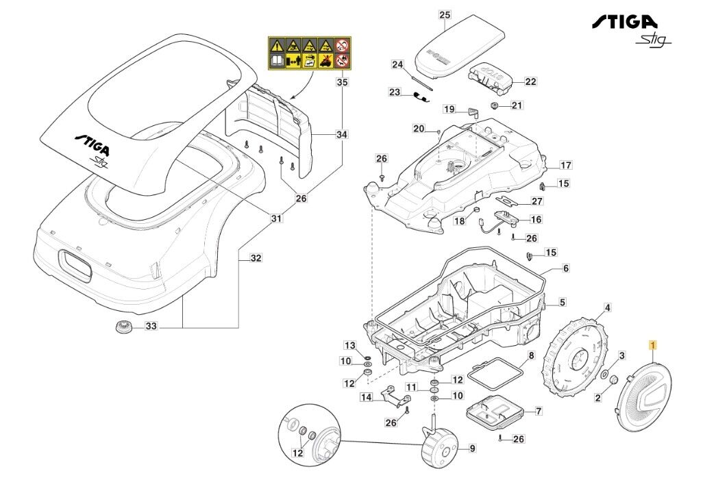 Groupe Coque ORIGINALE STIGA Robot Tondeuse A1500 RTK 381119737/0