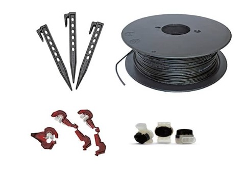 100m Cable Robot Tondeuse + 50 Piquets de Fixation + 10 Connecteurs de Câble + 10 Bornes de Connexion, Fil de Délimitation pour Tondeuse à Gazon Compatible avec Bosch, Gardena, Husqvarna, Stihl etc