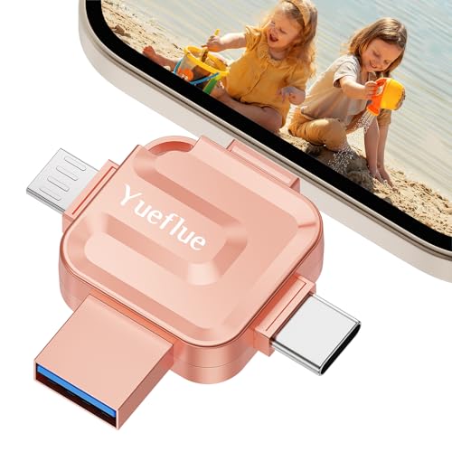 Yueflue 4 in 1 Clé USB pour i0S/Android/PC, 64 Go Clé USB lphone pour Plus de Photos et de Vidéos. lphone Mémoire Externe pour Augmenter l'espace de Stockage du Téléphone,Pas d'APP.