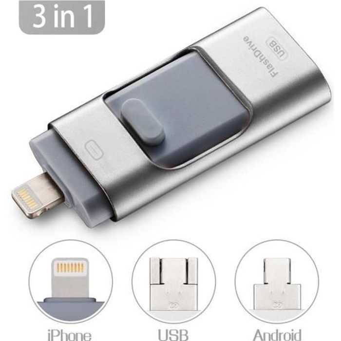 Clé USB pour iPhone 32 Go Clef USB 3-en-1 OTG USB 3.0 Cle USB Cryptée Stockage Externe pour iOS PC Ordinateurs iPad Mac iOS Android