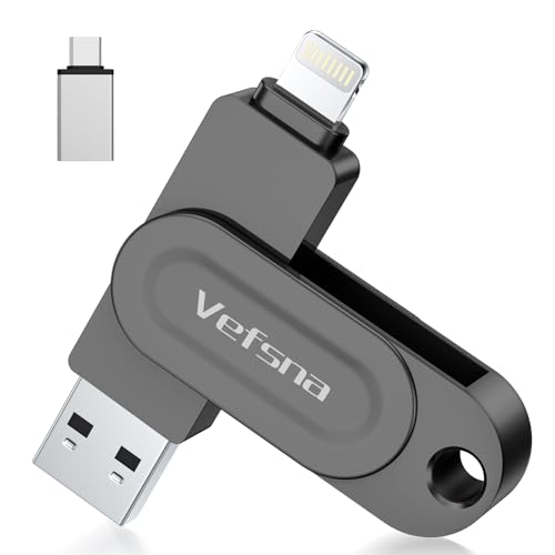 Cle USB pour iPhone, Vefsna Clé USB C 256 Go Apple Certifié Lightning Clef USB 3.0 Photo Stick Stockage Externe pour iPad Mac iOS OTG Android Mobile PC avec MFI Lightning, USB 3.0, Type C 3 in 1