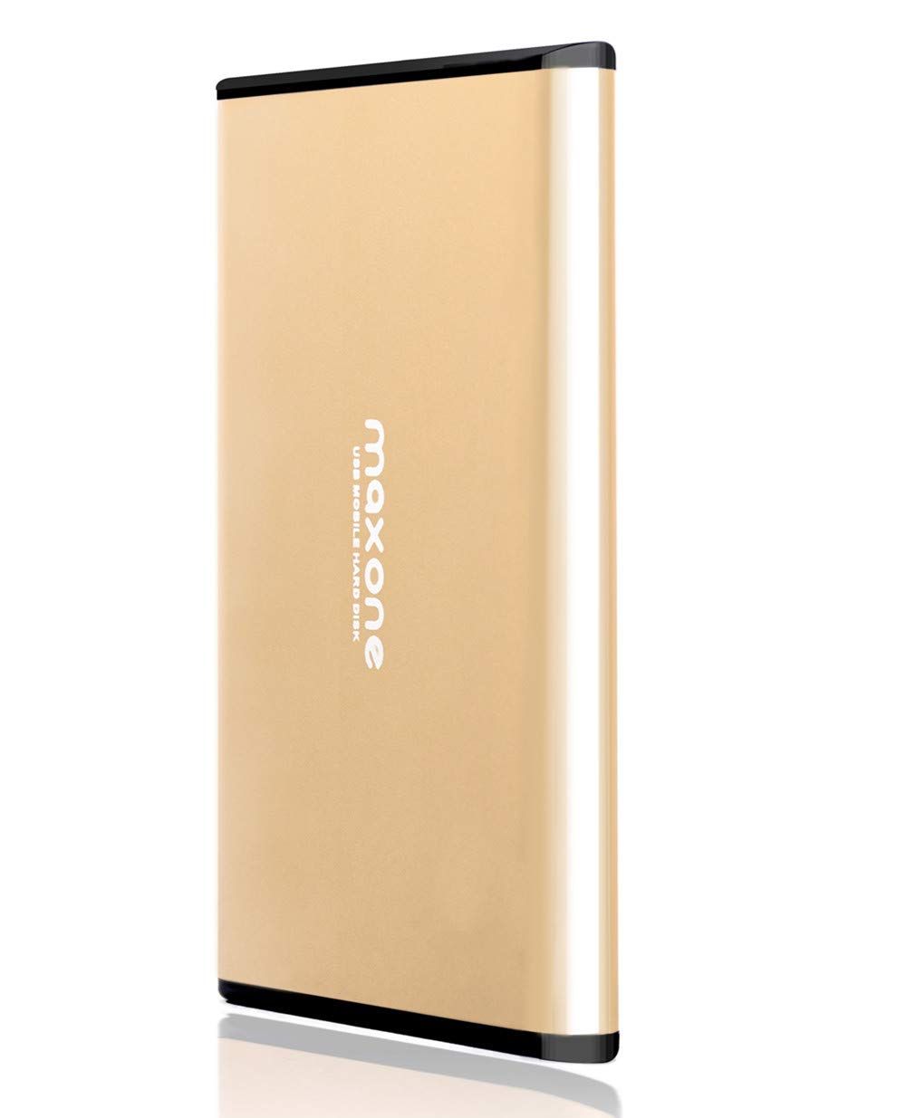 Maxone Disque Dur Externe Portable 500Go - 2.5'' USB 3.0 Ultra Fin Tout-Aluminium Stockage HDD pour Xbox One, PS4, PC, Mac, Laptop, Ordinateur de Bureau, Ordinateur Portable, TV, Wii U, Windows(Gold)