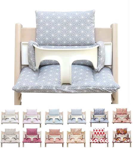 Blausberg Baby – Set de Coussins pour Chaise Tripp Trapp® Stokke – Lavable, essuyable, Tissu en Coton Enduit et revêtu Oeko-Tex, Rembourrage 6 cm, fabriqué à la Main en Allemagne Happy Star Gris