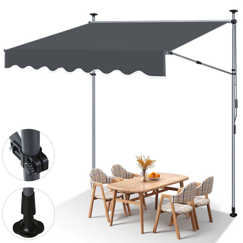 Jiubiaz Store banne, Store de balcon à manivelle hauteur réglable 214-305cm, L 200CM Auvent manuel pour terrasse et jardin - Anthracite