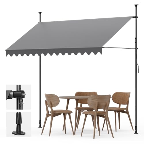 YEAUPE PRO Store banne | Store banne de Balcon sans perçage | Manivelle | Protection UV, Hauteur réglable, Imperméables | Gris (250 x 180 cm)
