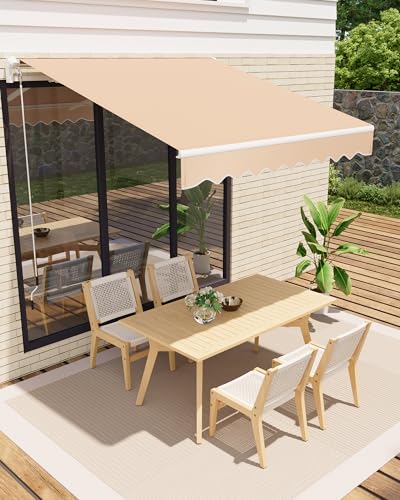 Jiubiaz Store banne, Store de balcon à manivelle hauteur réglable 214-305cm, L 200CM Auvent manuel pour terrasse et jardin - Beige