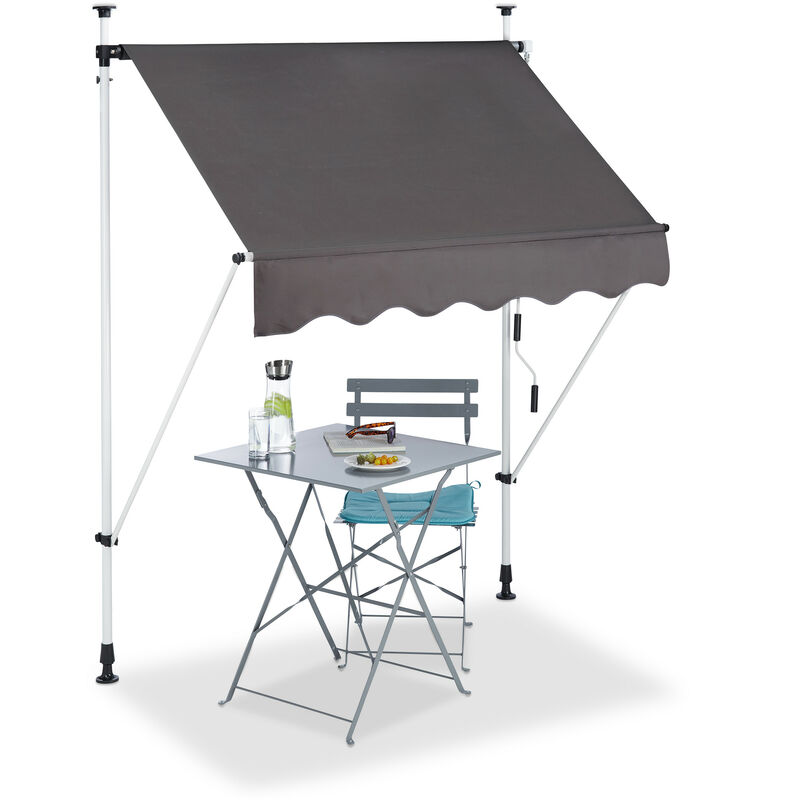 Relaxdays - Store Balcon, Manivelle, Hauteur Réglable, Résistant uv, Polyester, Acier, Embouts, 150 x 120 cm, Gris