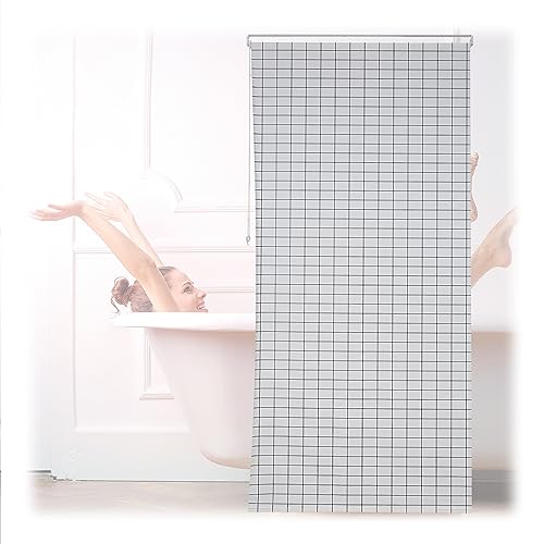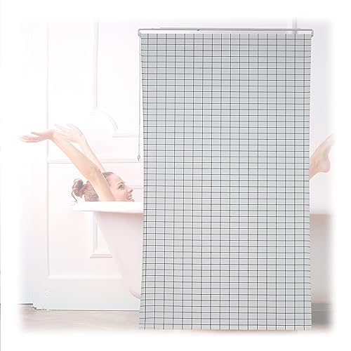 Relaxdays Store de Douche à Carreaux, Rideau de Baignoire, Salle de Bains, L x H : 100 x 240 cm, Hydrofuge, Blanc/Noir
