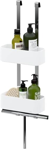 Tiger 2-Store Etagère de Douche, avec 2 Niveaux, Etagère Douche à Suspendre sans perçage, Pour Cabine de Douche, Avec crochet pour raclette de vitre, Blanc, 25 x 65 x 13 cm