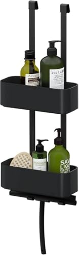 Tiger 2-Store Etagère de Douche, avec 2 Niveaux, Etagère Douche à Suspendre sans perçage, Pour Cabine de Douche, Avec crochet pour raclette de vitre, Noir, 25 x 65 x 13 cm