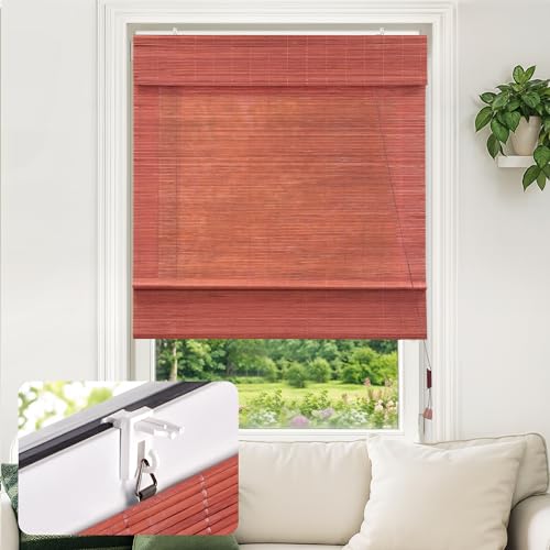 Victoria M. Store Bateau en Bambou, Protection Solaire et visuelle Store à enroulement latéral, Montage Facile sans Perçage, 150 x 160 cm, Cerise