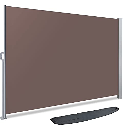VOUNOT Paravent extérieur avec Housse de Protection 140x300cm Auvent Rétractable Brise Vue Rétractable pour Jardin, Balcon, terrasse Store latéral Vertical Marron