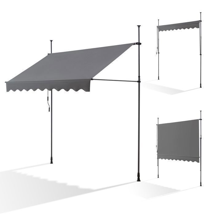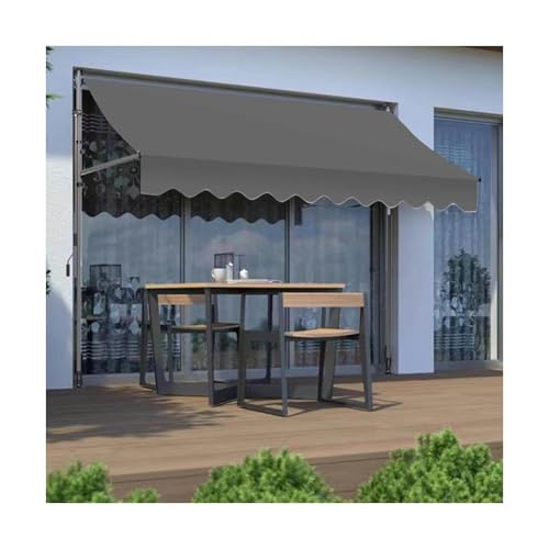 Canopée Auvent rétractable Gris 2.5m Store Manuel Balcon Exterieur sans Percer avec Marquise Soleil terrasse Hauteur réglable