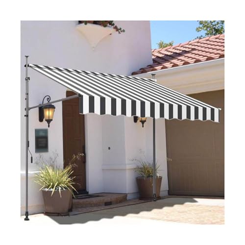 Canopée Auvent rétractable Gris 3m Store Manuel Balcon Exterieur sans Percer avec Marquise Soleil terrasse Hauteur réglable