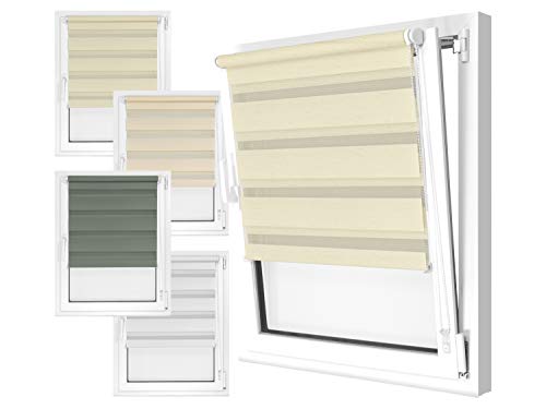 npluseins Store Double en 4 Couleurs & en 8 Tailles - avec Fixation par pincement sur Le Cadre de la fenêtre et Rail de Support Fixe - Montage en 3 étapes très Facile, env. 80 x 150 cm, crème