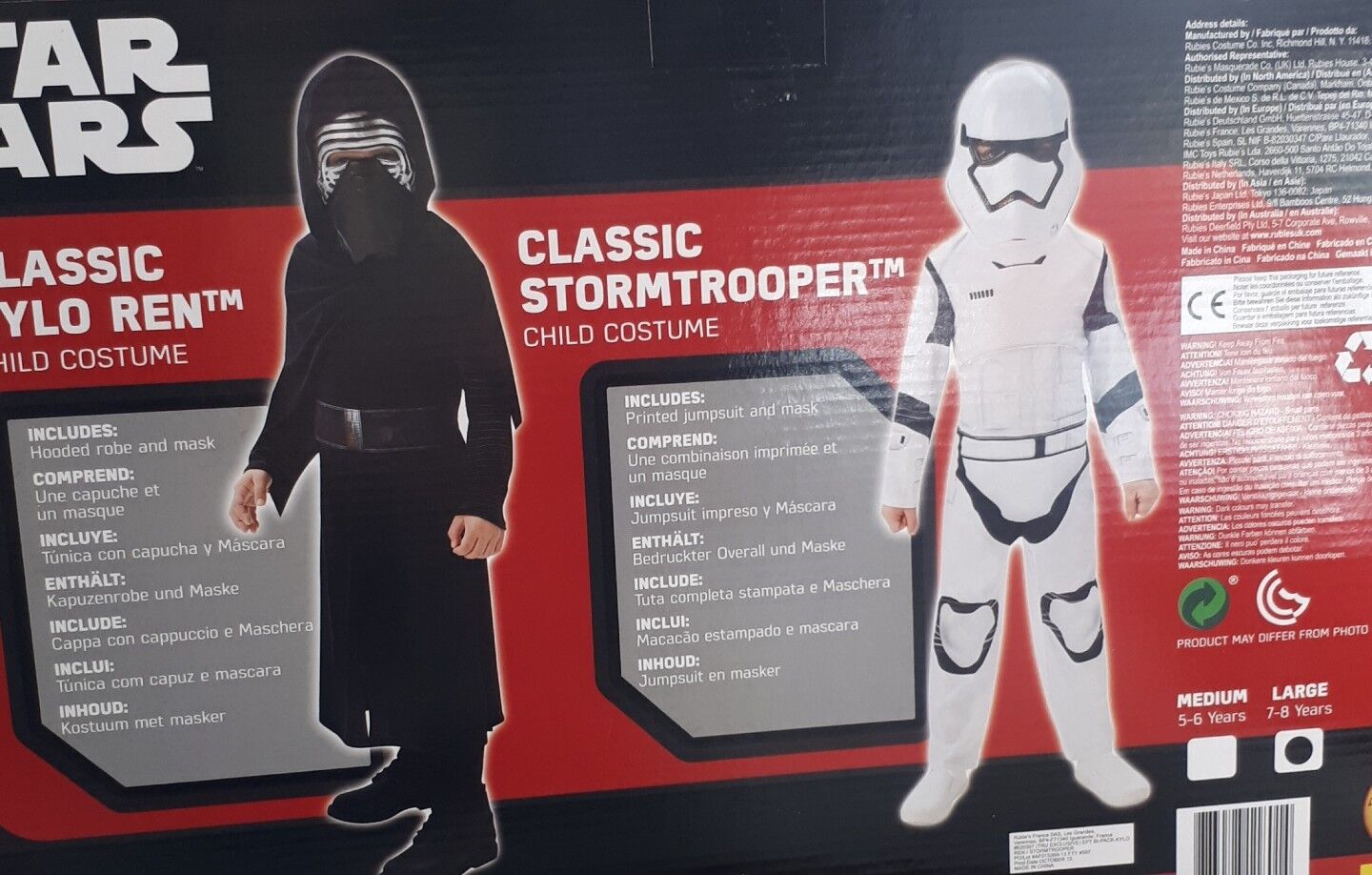 STAR WARS= 2 déguisement :classic Kylo Ren Tm Et Stormtrooper Taille 7/8 Ans