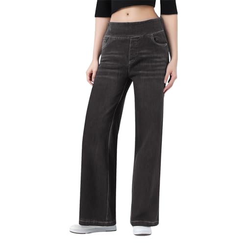 Générique Straight Jean Femme - Pantalon Femme Jean Jean à Jambe Large à Enfiler pour Femme Taille Haute Extensible Ample Tendance Jambe Droite Pantalon en Denim (Grey L)
