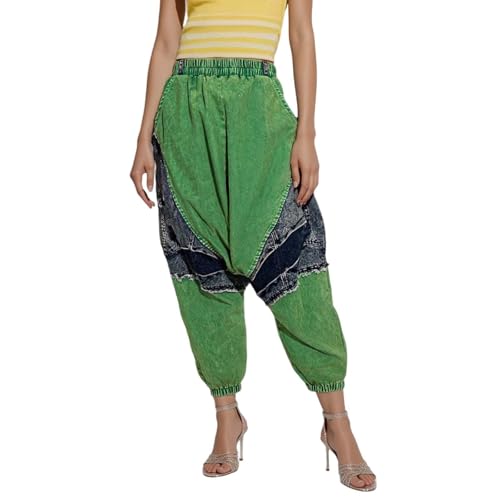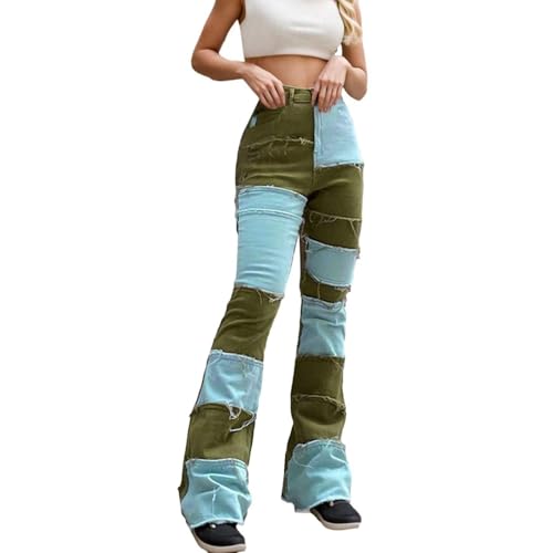 Générique Straight Jean Femme - Pantalon pour Femme Jean Skinny Taille Haute à empiècements contrastés pour Femme Pantalon en Denim à Ourlet Taille Haute Style Boyfriend (Green XXL)