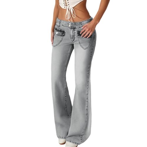 Générique Jean Taille Haute Femme - Straight Jean Femme Jean Extensible Taille Basse pour Femme Pantalon évasé Bootcut Haute élasticité Coupe Slim Tendance décontracté Tenue Quotidienne (Grey S)