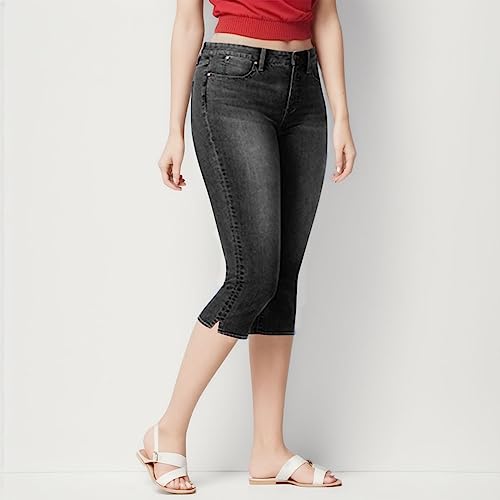 Générique Straight Jean Femme - Jean Skinny Femme Jeans Jeans Hight Stretch Pants Calf Denim Longueur Waisted Slim Femmes Jeans Femmes (Black L)