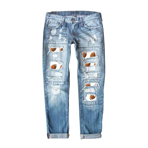 Générique Straight Jean Femme - Jeans Large Femme Jeans imprimés de Football pour Femmes Pantalons en Denim décontractés pour Femmes (Light Blue XXL)