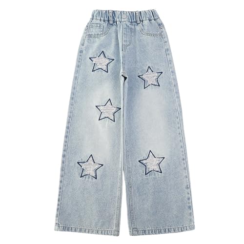 Generisch Jean pour enfant fille Baggy Straight Y2k - Jean large pour fille - Avec taille élastique - Denim - Pantalon ample et extensible - Pantalon de loisirs - Coupe large - Pantalon d'été slim