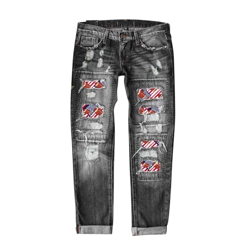 Générique Straight Jean Femme - Jean Femme Taille Elastique Jeans imprimés de Football pour Femmes Pantalons en Denim décontractés pour Femmes (Dark Gray L)