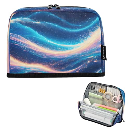 Nexawaveo Trousse à crayons de grande capacité 21,1 x 15 cm Cosmic Blue Streams Pochette à stylos pour l'école, le bureau, les voyages