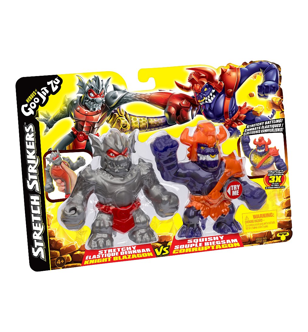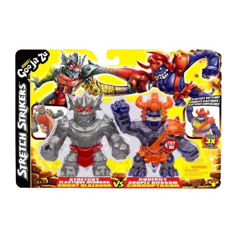 Heroes of Goo Jit Zu Coffret Duel Stretch Strikers, 2 Combattants élastiques, Chevalier Blazagon Élastique vs Corruptagon Souple, s’étirent Jusqu’à 3 Fois Leur Taille