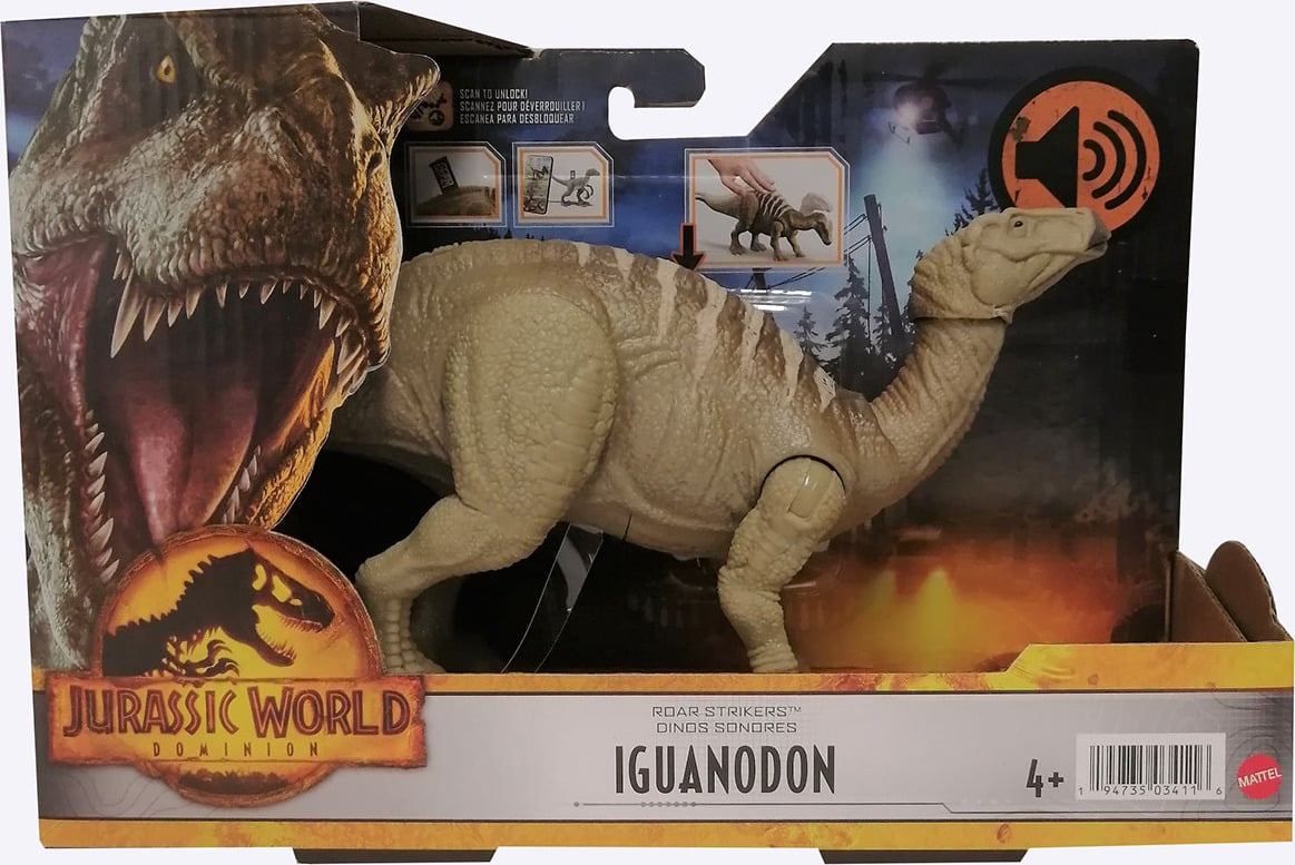 Mattel HDX41 Jurassic World Dominion Iguanodon Roar Strikers avec son, dinosaure avec attaque de rugissement, brun, figurine de dinosaure