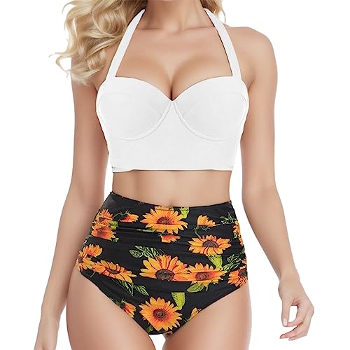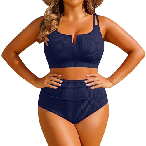 Générique Bikini Taille Haute Femme, Maillot De Bain String Femme Push Up Contrôle du Ventre Ensemble Bikini Décontracté Tendance Coupe Bretelles Croisé sur Le Devant Beachwear