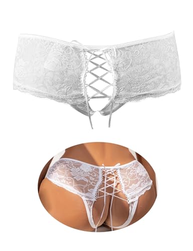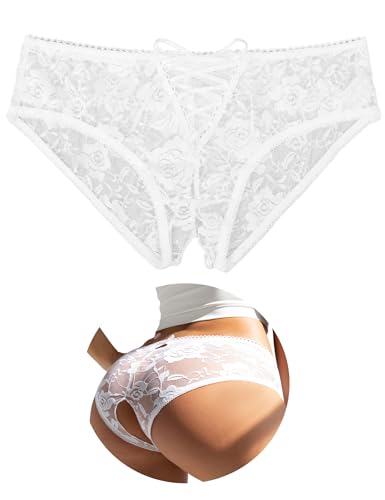 comeondear Blanc Tanga Femme Sexy Chic Hot Dentelle String Sexy de Pute String Ouvert Érotique Grande Taille Lingerie Culotte Fendue sous-vêtements Féminin Shorty Slip Stretch Underwear 1-Blanc,XS-S