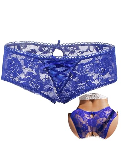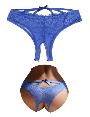 comeondear String Sexy de Pute String Ouvert Érotique Femme Chic Hot Tanga Dentelle Grande Taille Lingerie Culotte Fendue sous-vêtements Féminin Shorty Slip Stretch Underwear Panty 1-Bleu,XS-S
