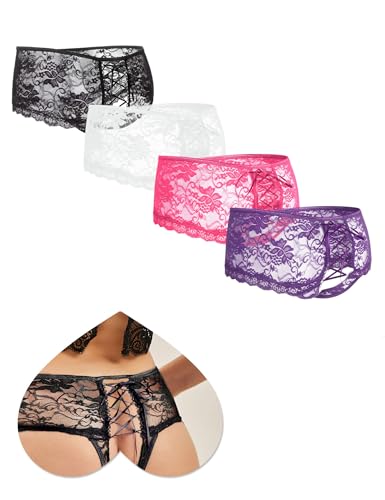 comeondear String Ouvert Femme Sexy Érotique sous-Vêtements Grande Taille Tanga Chic Hot Sexy Dentelle Dentelle Lingerie Culotte Fendue Slip Bresilien Shorty Slip Stretch Underwear 1-Rose,3XL-4XL