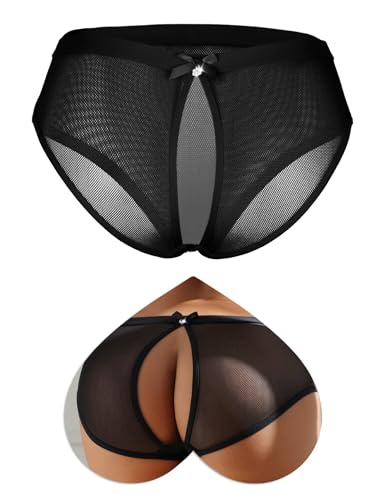 comeondear Slip Ouvert Sexy Femme Culotte Fendue String Grande Taille Tanga Mesh Slips Bresilien Respirante Doublure Coton sous-Vêtement Féminins Underwear Lingerie Noir,M