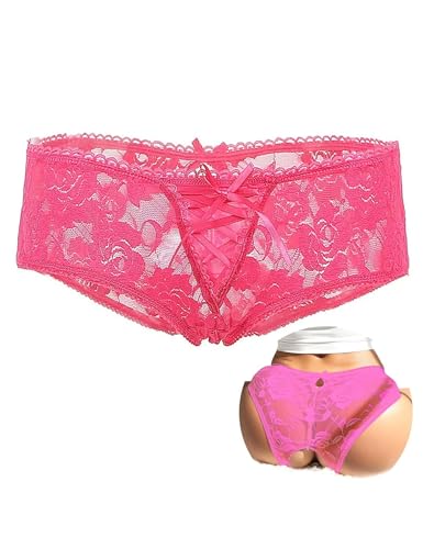 comeondear String Ouvert Femme Sexy Érotique sous-Vêtements Grande Taille Tanga Chic Hot Sexy Dentelle Dentelle Lingerie Culotte Fendue Slip Bresilien Shorty Slip Stretch Underwear 1-Rose,XS-S